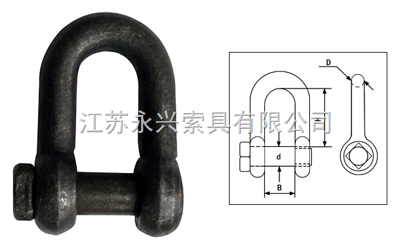 永腾牌D型国标卸扣包括一般起重用卸扣、船用卸扣和普通卸扣。重量较重、体积较大,一般不安装于不经常拆卸的位置。选择卸扣时应注意安全系数,一般有4倍、6倍和8倍的。常见卸扣规格为0.33T、0.5T、0.75T、1T、1.5T、2T、3.25T、4.75T、6.5T、8.5T、9.5T、12T、13.5T、17T、25T、35T、55T、85T、120T、150T。