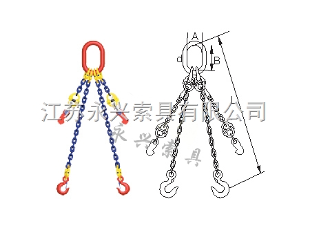 如果用三腿或四腿的链条索具起吊非均匀分布起重物件时,那就应该以起吊角zui大的两条腿起重物体计算每条腿的额定载荷。当双腿索具两腿倾角不同时那就应该只以一根链条起吊整个起重物件计算每腿的额定载荷。