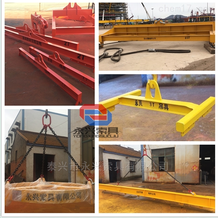 吊梁设计制造的安全系数不应小于额定起重量的4倍;其上的吊钩、索具灯影对称分布、长短相等、连接可靠,新制造吊梁应用1.25倍的额定载荷试验,验证后方可投入使用;吊梁使用前应检查吊梁及起重机吊钩及吊索连接处是否正常;要保持吊索与吊梁水平夹角不能过小,以避免水平分力过大使吊梁发生变形,此夹角一般应为45°~60°。若夹角过小,可用卸扣将在起重机吊钩上的两绳圈固定在一起,防止其脱钩;当吊梁产生裂纹、*变形、磨损、腐蚀严重时,应立即报废。