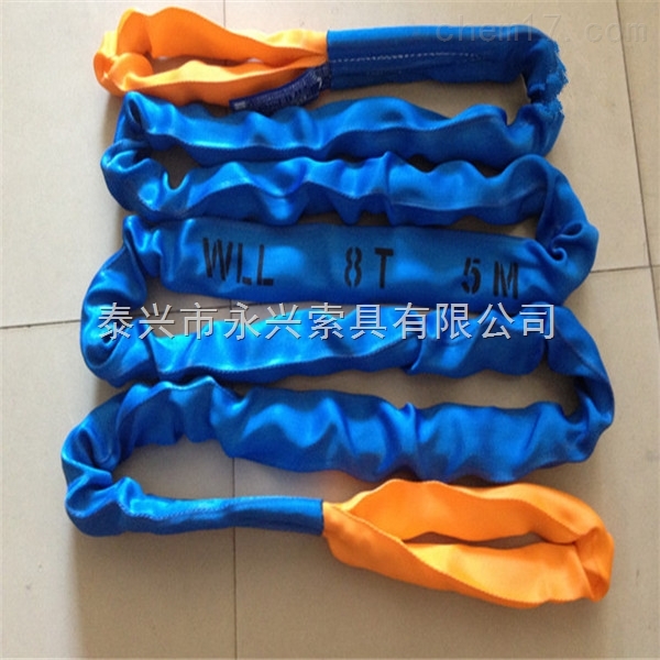 圆环带承载芯由无极环绕平行排列的丝束组成,采用单股丝加捻,保护套由特制双层耐磨套管对接成环型,以警示、保护、承载芯安全使用。