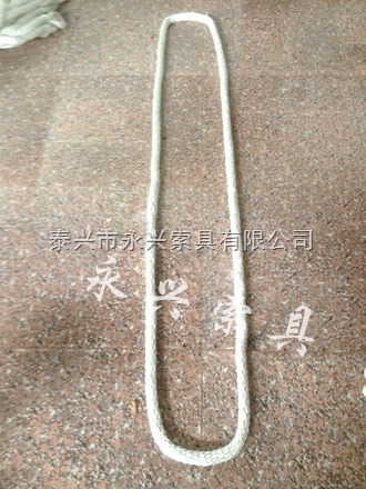 特点:永兴索具生产的吊绳为手工尼龙绳,成品绳较柔软,具有抗拉强度高,耐酸耐碱耐腐蚀。两头可做成扣,用于吊装作业,也可做成环形。