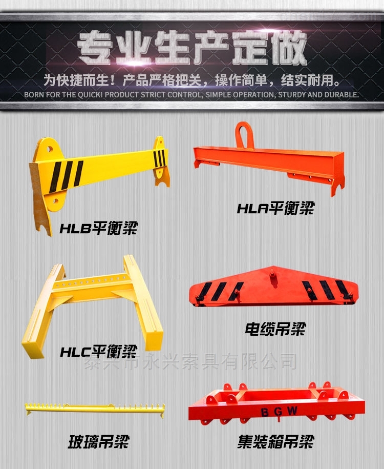 平衡梁吊具价格由泰兴永兴索具有限公司提供,公司主要生产柔性吊带、扁平吊装带、复合吊装绳成套索具、高强纤维吊装带、钢丝绳吊具、复合钢丝绳吊具、特种钢丝绳吊具、橡胶复合钢丝绳吊具、尼龙复合钢丝绳吊具、环形柔性吊带、两头扣柔性吊带、环眼柔性吊带、双扣加保护柔性吊带、起重链条成套索具、引纸绳、注塑绳、软梯、安全带等几大系列,欢迎新老客户、来函洽谈订购!