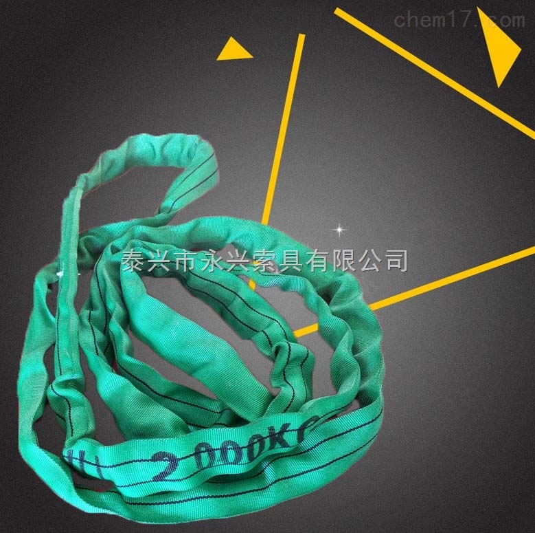 (2)圆环吊装带 圆环吊装带选用上的合成纤维为原料,采用上*织造设备与工艺加工而成,其主要由承载芯、吊带保护套组成。承载芯无级环绕平行排列,保护套由特制耐磨套管对接成环型,以警示、保护承载芯安全使用。根据不同吊装环境要求,可分为:普通型、防火型、高强型、组合型等产品系列。生产范围:0.5T-500T。