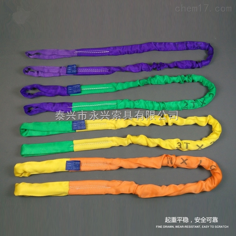 3、圆形吊索易受机械、化学、高温损伤、假如保护层严重破损,这样吊索不得使用