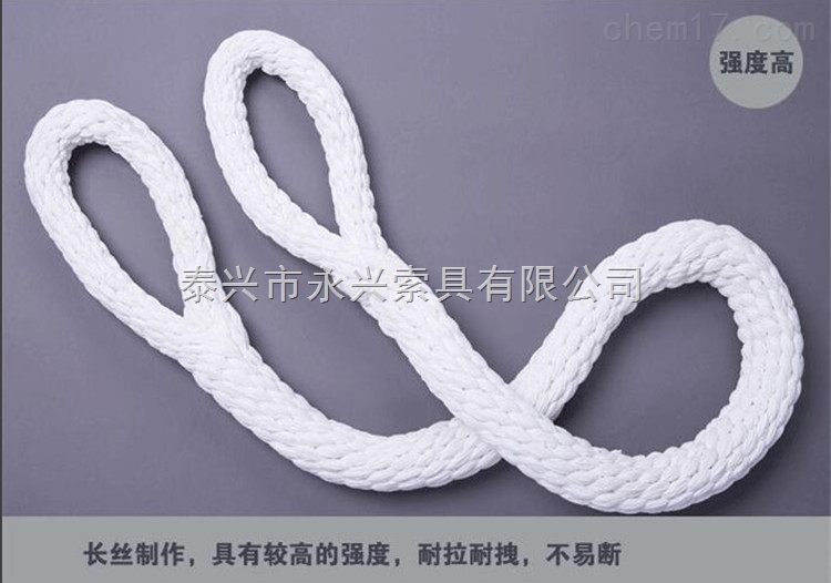 尼龙吊绳适用于石油、化工等重点防火单位、机械金加工、机械组装及整机外表油漆装箱出厂吊装,它还适用于发电厂机组检修起吊发电机和汽轮机转子等;尼龙吊绳具有轻便、快捷、耐磨、碰撞不会产生火花,不损坏外表油漆,是理想的钢丝绳换代产品。