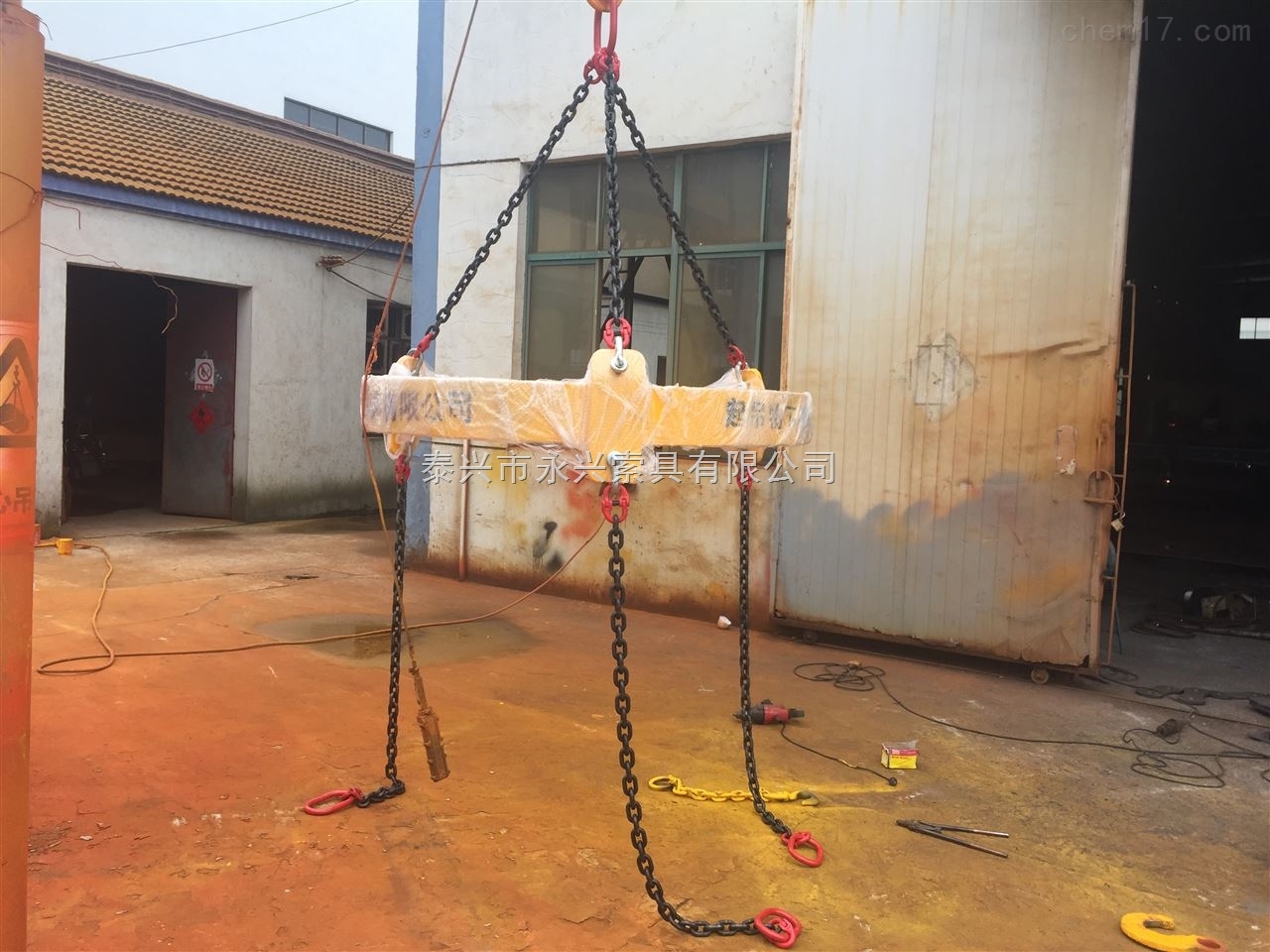 吊梁设计制造的安全系数不应小于额定起重量的4倍;其上的吊钩、索具灯影对称分布、长短相等、连接可靠,新制造吊梁应用1.25倍的额定载荷试验,验证后方可投入使用;吊梁使用前应检查吊梁及起重机吊钩及吊索连接处是否正常;要保持吊索与吊梁水平夹角不能过小,以避免水平分力过大使吊梁发生变形,此夹角一般应为45°~ 60°。若夹角过小,可用卸扣将在起重机吊钩上的两绳圈固定在一起,防止其脱钩;当吊梁产生裂纹、*变形、磨损、腐蚀严重时,应立即报废。