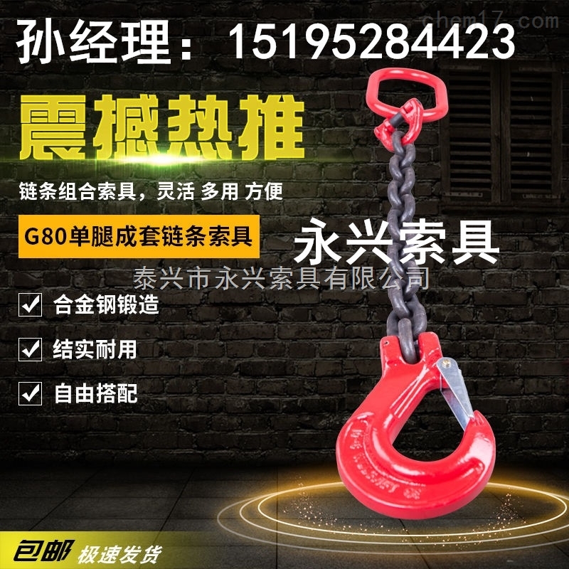 链条索具是以金属链环连接而成的索具,按照其形式主要有焊接和组装两种,按其构造单只和多只等,采用优质合金钢,其突出特点是耐磨、耐高温、延展性低、受力后不会伸长等。其使用寿命长,易弯曲,适用于大规模、频繁使用的场合。灵活的多肢,多种组合形式可提高工作效率、降低成本等。