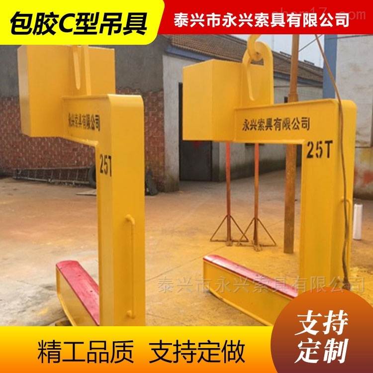 防撞C型吊钩是在C型吊钩的接触面上一层聚氨酯胶,作用:耐磨,保护卷板,减少对钢板卷材的损伤.